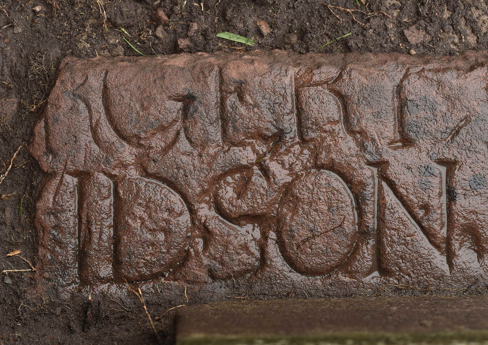 always exciting to clear the soil to see the inscription below; photo: Andrew Dowsett