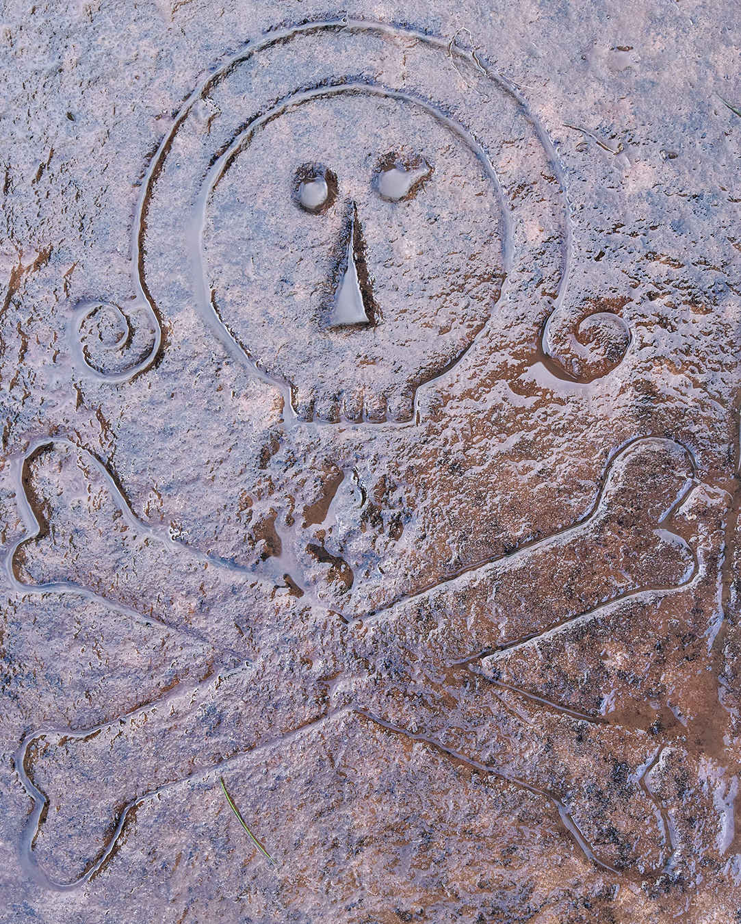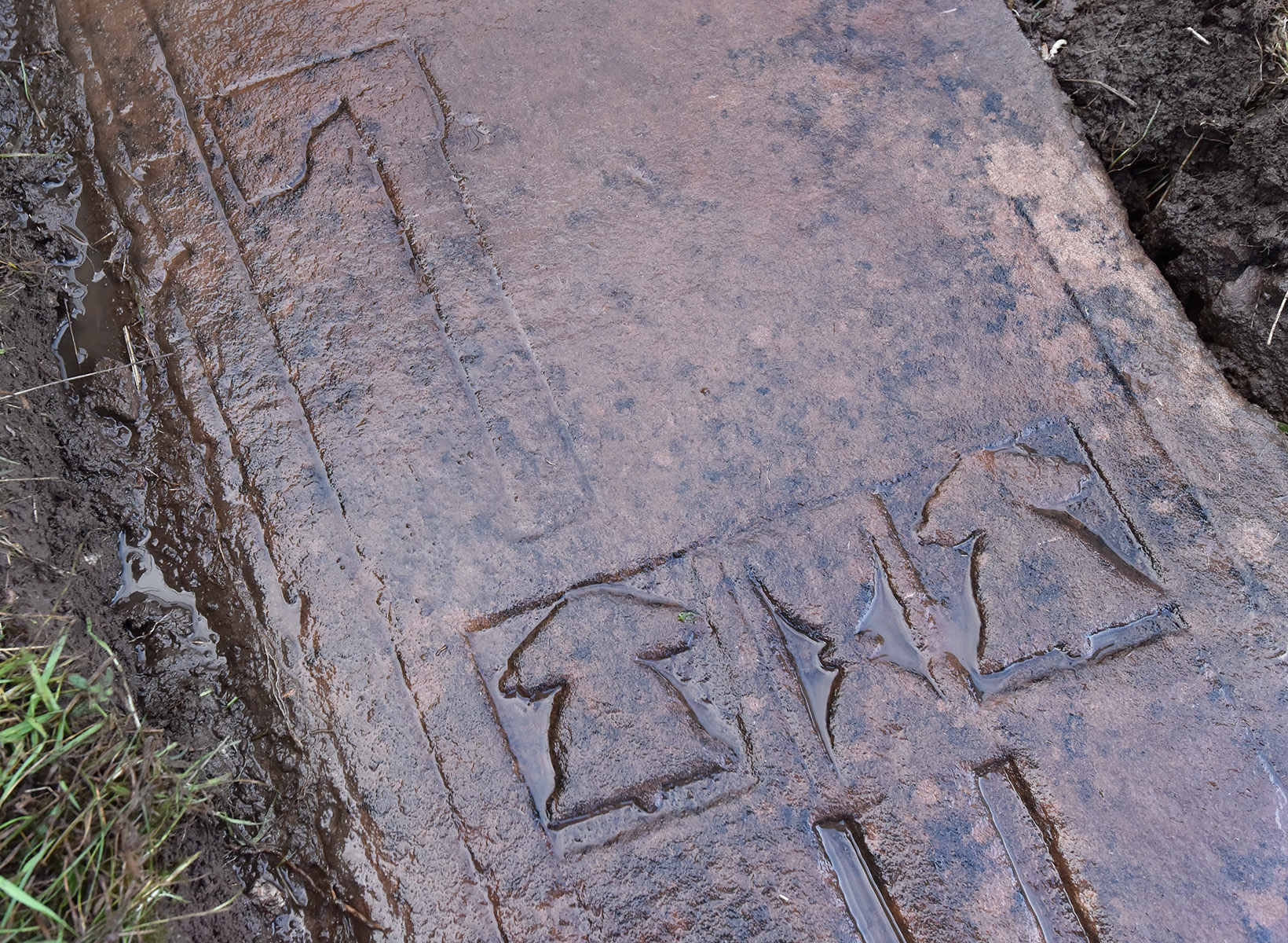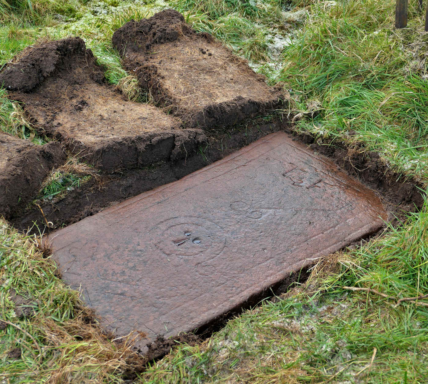 The three bear heads of the Forbes family on a slab at Cullicudden; photo by Andrew Dowsett