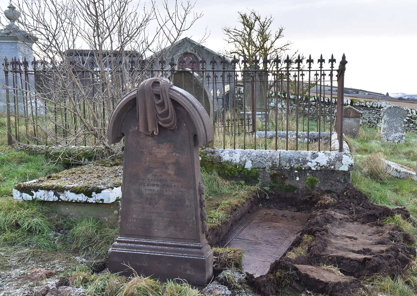 And finally an ornate sandstone headstone, the first date upon it being 1862, but with the most recent date of as recently as 1906. It has survived least well of all six, as it fell on its face and suffered some damage to its ornamentation and some spalling of its back. But it is still in fine shape and well done to descendant Ruth Black who had Hood’s of Dingwall re-erect the headstone.
