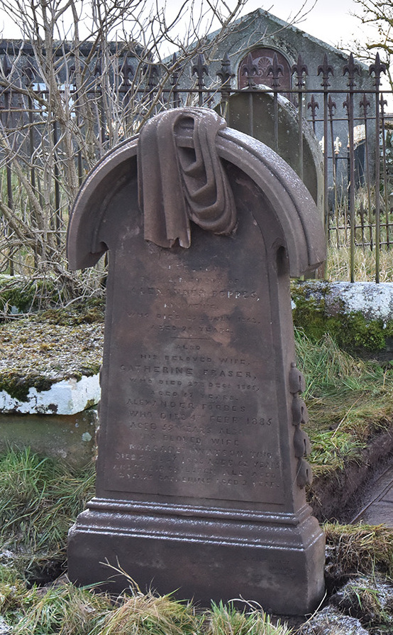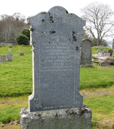 They are commemorated by a granite headstone in Cromarty Gaelic Burial Ground, the inscription reading: “In loving memory of CHARLES URQUHART died at Jemimaville 6th October 1916 aged 84 and his wife JESSIE FORBES also died there 2nd Feb. 1922 aged 84 Their son DAVID died Poyntzfield 18th Feby 1884 aged 17. Erected by the Family.”