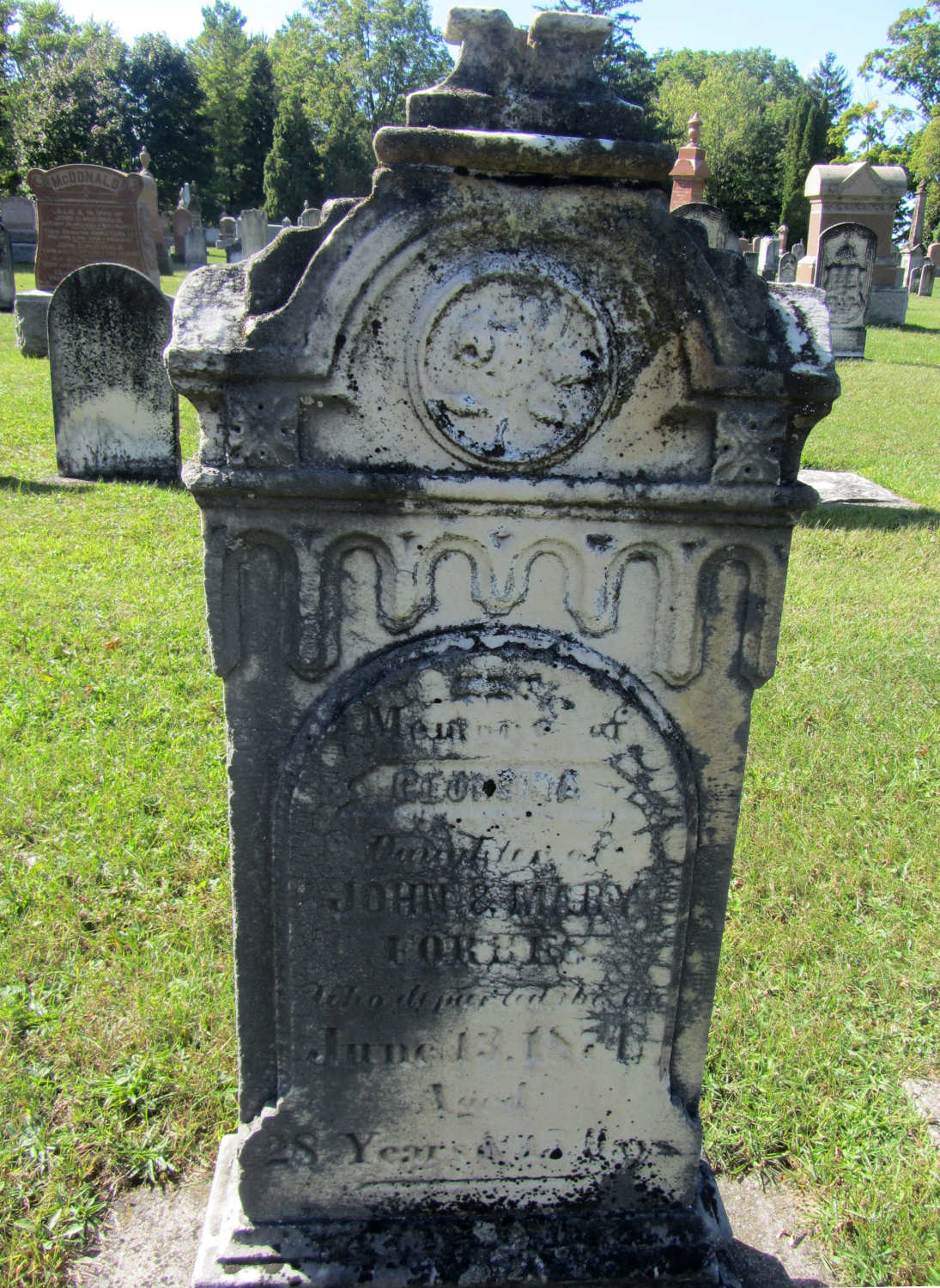 In / Memory of / GEORGINA / Daughter of / JOHN & MARY / FORBES / who departed this life / June 13, 1871 / Aged / 28 Years & … Days