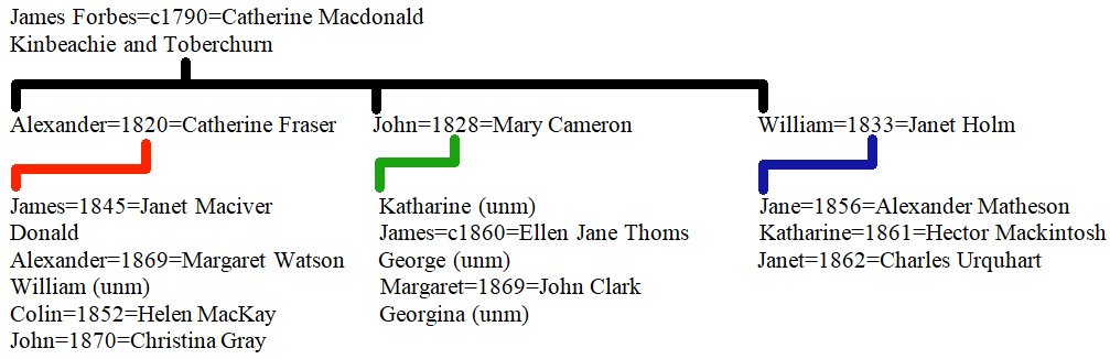 1. Alexander Forbes (1791–1885) we have seen became a tenant farmer at Kinbeachie and married Catherine Fraser. They and some of their family are commemorated on the headstone at Cullicudden.