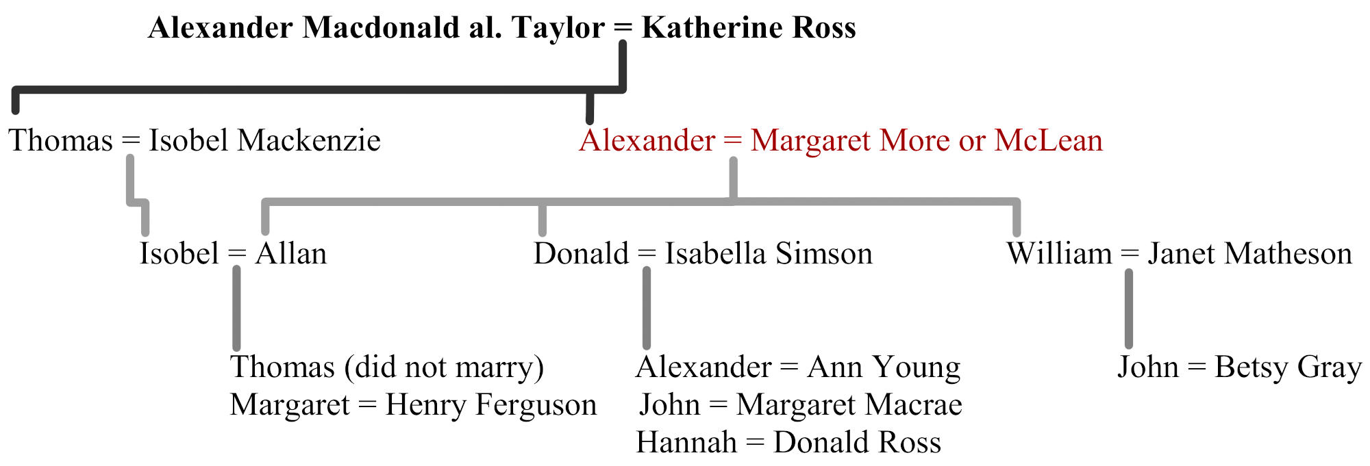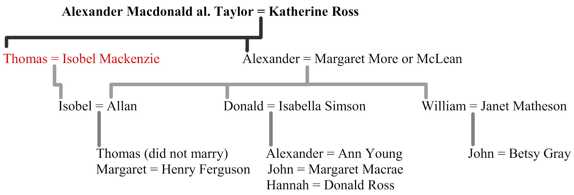 Of the eight children of Alexander Macdonald and Katherine Ross, we know the history of only Thomas and Alexander.