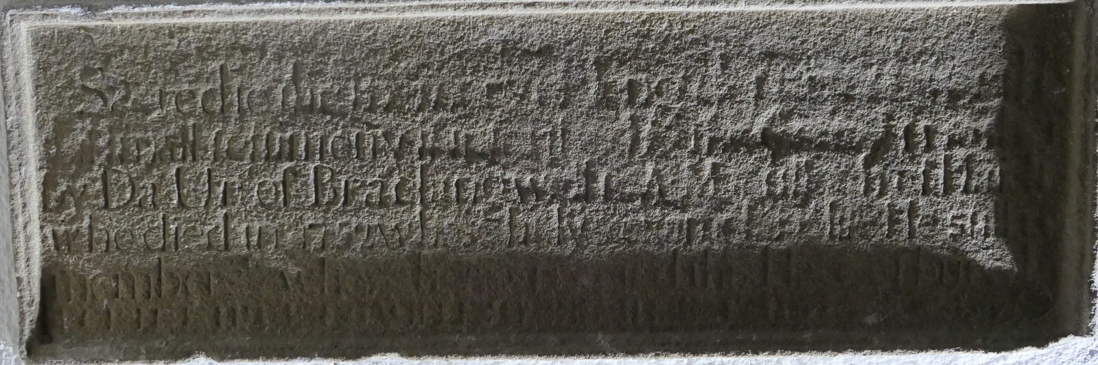 Why is a damp proof membrane a good thing? Well, there is no damp proof course in the walls – they are medieval after all – so the moisture from the soil is drawn up through the wall to issue through the sandstone memorials, damaging them – unless a damp proof membrane is put around the memorials themselves! You can see this effect in other heritage buildings in the area with sandstone memorials sunk into an unprotected wall continuing to deteriorate. I do wonder if part of the reason for the serious erosion of this particular memorial was due to its relatively large volume of sandstone soaking up much of the damp coming up the wall at this point. Anyway, the stone is now fully lead-lined.