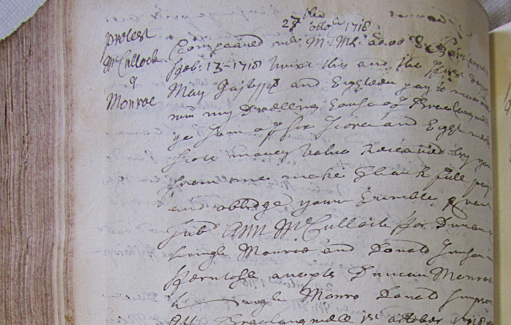 With Anna’s husband dying a relatively young man in 1708, aged 48, she must have been the dominant force in Braelangwell for many years. We have begun to research Anna McCulloch, and here she is recovering a debt from some rascally Munros in Ferintosh in 1718, three hundred years ago!