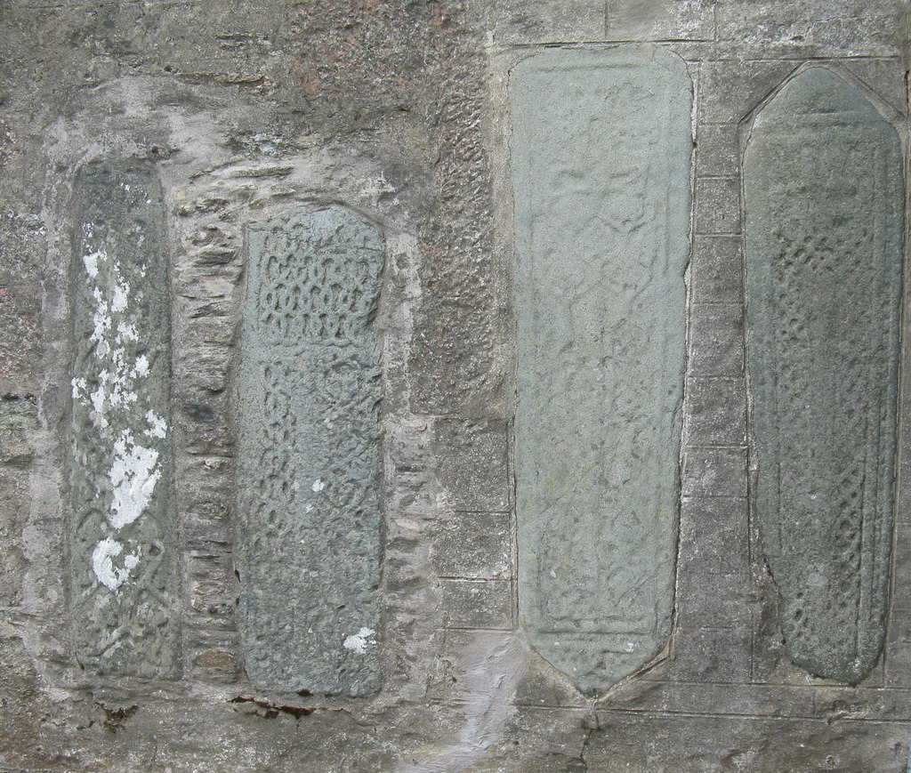 The Church of Scotland in Strachur, within which Hugh Macdonald preached for 50 years, is also an attractive building and contains a most unusual feature – medieval gravestones were just over a hundred years ago built into its external walls. Very different in style from those on display (somewhat more sympathetically) at Kirkmichael, they nevertheless are preserved for posterity!