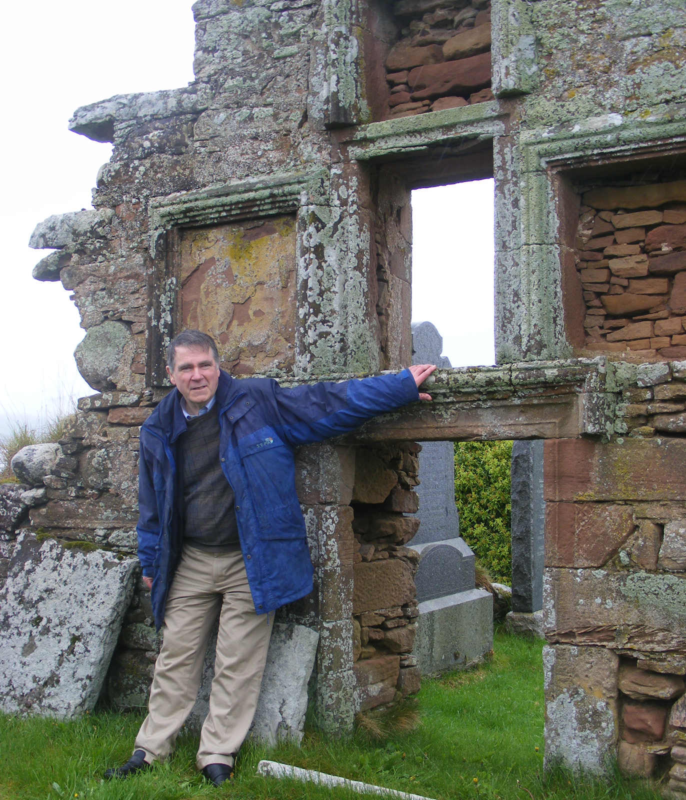 and here is yrs trly in front of the Aisle of Ardullie during a Kirkmichael Trust guided tour of Cullicudden; photo: Verity Walker Eley