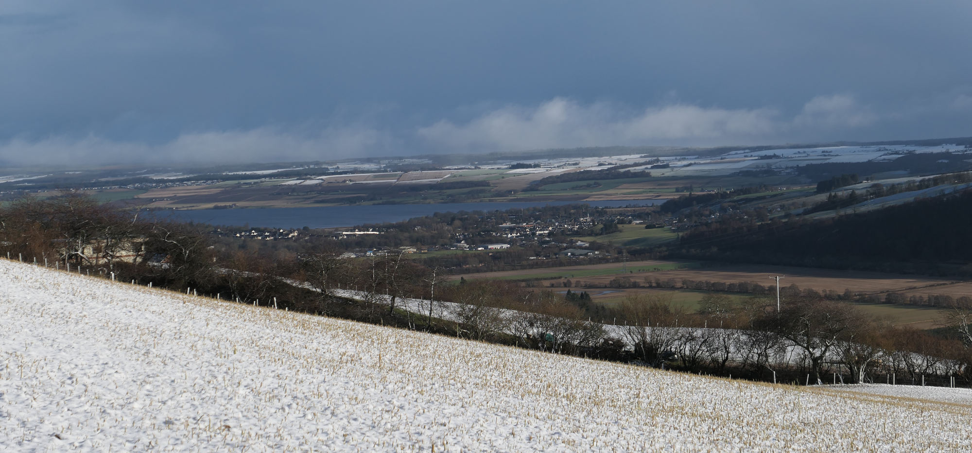 Looking down from the Heights of Dochcarty to the town of Dingwall, with the Black Isle across the Firth; photo by Jim Mackay