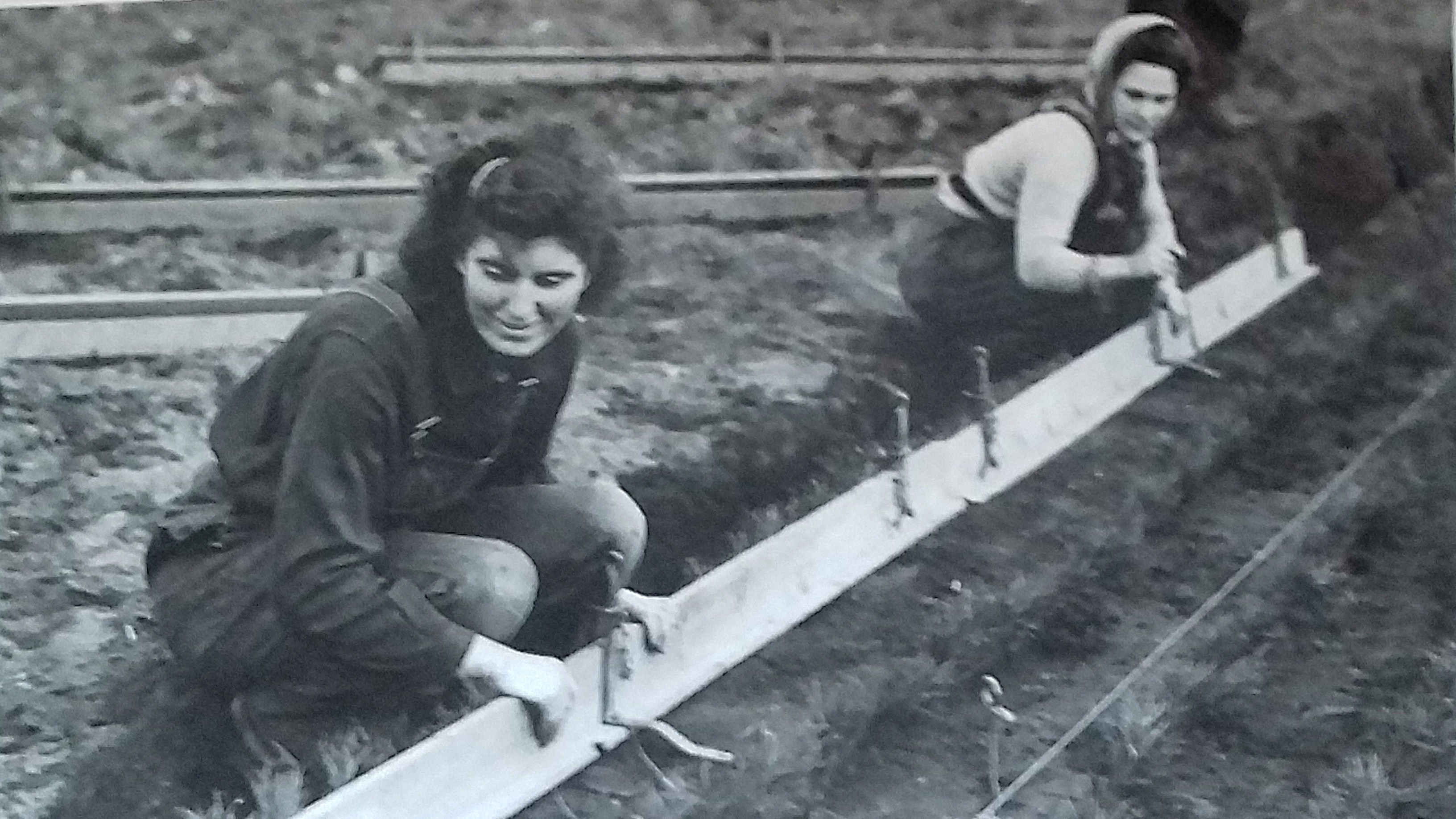 Chrissie, one of the daughters of Norman MacKinnon and Annie Gillies, hard at work in the Forestry Commission nursery at Blackstand