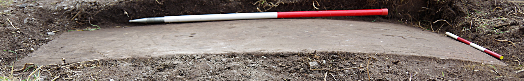 The partly-exposed slab is cleaned off, recorded and covered in sieved soil. Photos: Jim Mackay