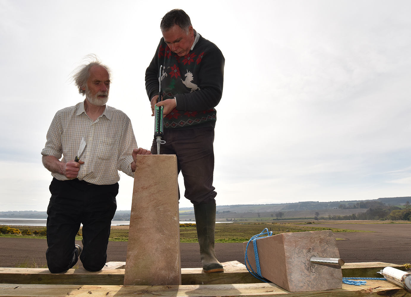 With the dyke strengthened we could now concentrate on rebuilding the Roderick Fraser and Grace Aird memorial and sticking the Needle back onto it.