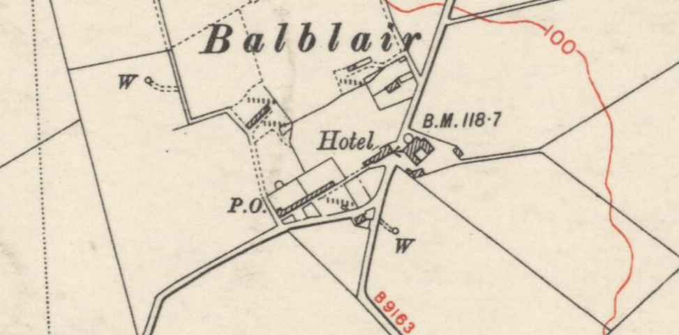 Aird Place at Balblair commemorates the Airds. There used to be a very tight corner at Balblair and, as recounted by Alan J. Michael, whose father was the local postie, “Just past the pub was Airds corner named after the elderly lady who lived there. It was later pulled down and the corner cut away as it was so sharp the bus had to go along to the pub yard to turn.” This must mean that the Airds” house is the one shown in the sharp angle on the corner.