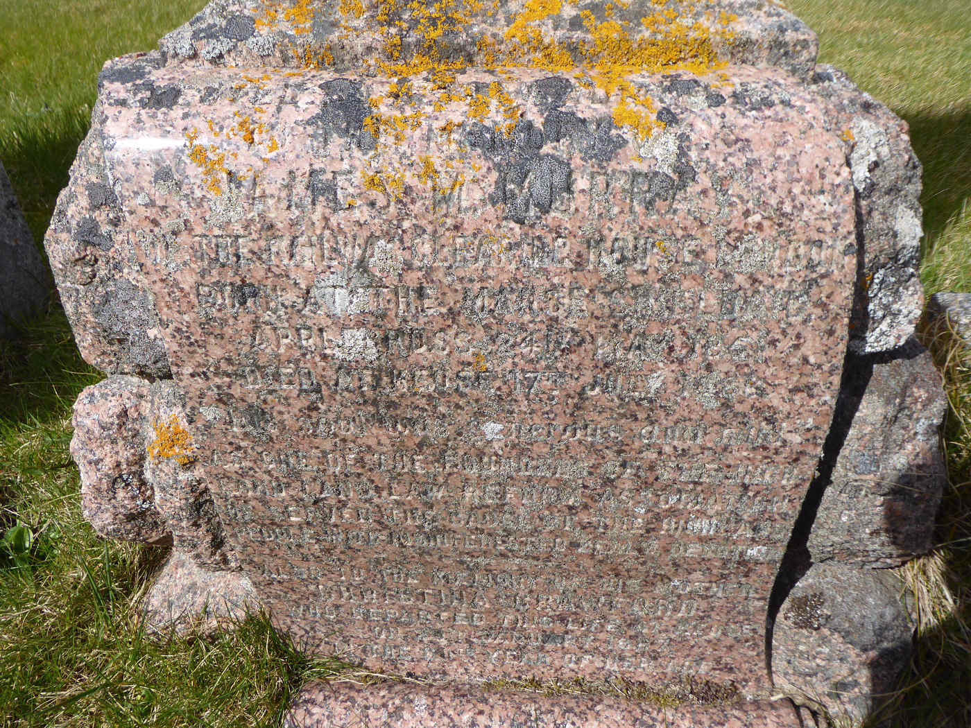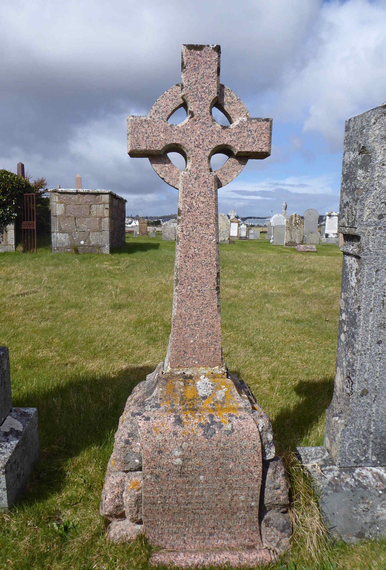 The red granite headstone in Sandwick cemetery – kindly photographed for me by distinguished local photographer John Dyer. The headstone is appropriately topped with a beautiful Celtic cross.